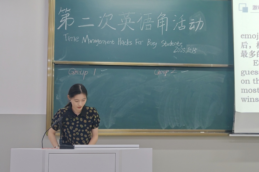 2025年10月15日晚7点,本学期第二期英语角在笃行楼C103教室顺利开展。本次活动以“Time Management Hacks For Busy Students”(给忙碌学生的时间管理妙招)为主题,从同学们的日常学习生活出发,特邀Calum与王子红两位老师参与指导。