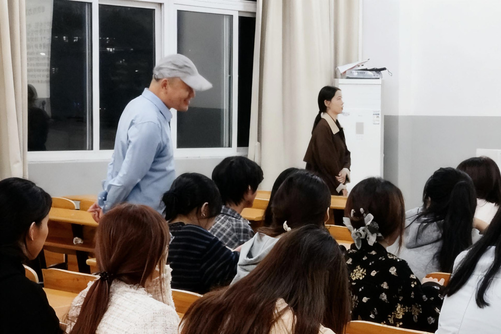 活动在主持人亲切流利的英文开场中拉开序幕。两位老师先后发言,从学生的实际困惑出发,鼓励大家畅所欲言。Calum老师率先分享了学生时代的时间规划心得;王子红老师则说到“时间就像海绵里的水,挤一挤总会有——关键是如何找到那个‘挤’的方法。”